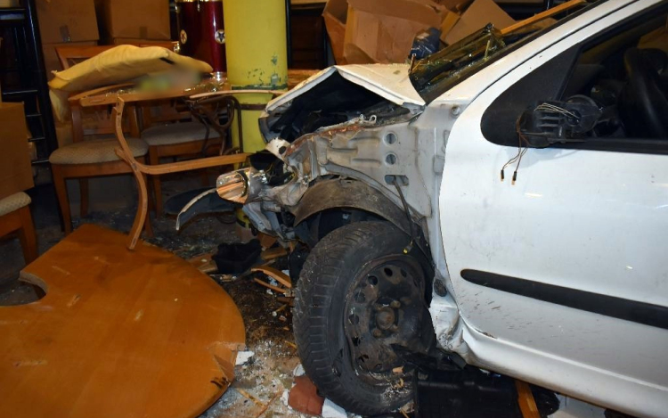 Egy 38 éves helyi férfi kocsijával felhajtott az útpadkára, majd betörte az étterem üvegét, és a vendégtérben lévő tartóoszlopnak ütközve állt meg.