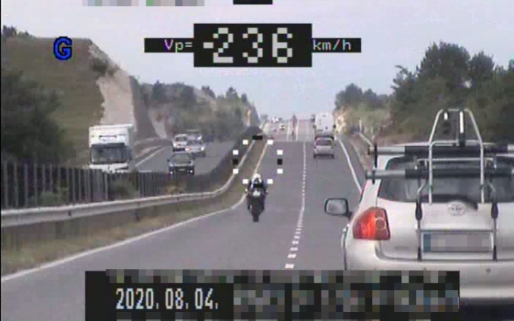 A rendőrök a 8-as számú főúton, Hajmáskér közelében figyeltek fel egy motorosra augusztus 4-én 11 óra körül, amint Veszprém felé száguldott. A jármű az adott útszakaszon megengedett legnagyobb sebesség – 110 km/h – több mint kétszeresével, 236 km/h-val haladt. A 61 éves veszprémi sofőrt a rendőrök megállították, majd 300 ezer forint bírsággal és 8 büntetőponttal sújtották. A motoros azt mondta a rendőröknek, hogy véleménye szerint biztonságosan közlekedett.